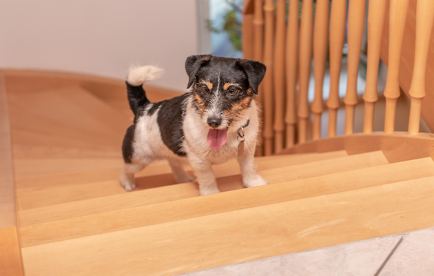 장난감을 살짝 흔들며 멍이가 따라오게 유도해 보세요. 가볍게 따라오기만 해도 훌륭한 유산소 운동이 됩니다. 만약 집에 계단이 있다면 한두 칸 정도 오르내리게 하는 것도 좋아요. 단, 관절이 건강한 멍이에 한해서만 시도해 주세요. |