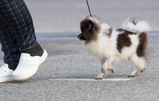리드 줄은 짧게 잡고 천천히 걷기 – 갑작스러운 움직임은 멍이 관절에 무리가 갈 수 있어요