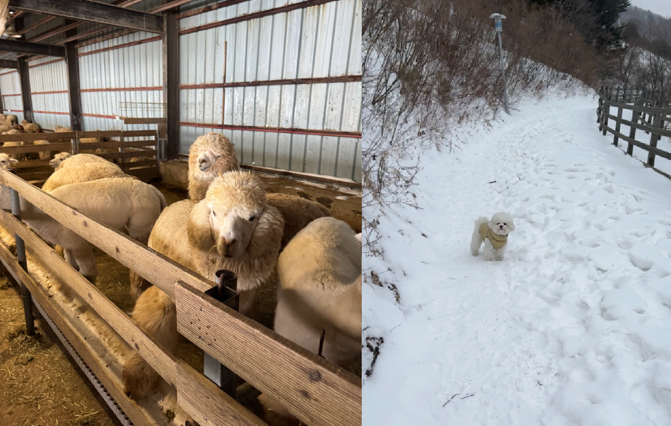 ✔ 위치 | 강원 평창군 대관령면 오목길 111 순수양떼목장 🔗네이버 지도 ✔ 주차 | 자체 무료 ✔ 운영 시간 | 매일 09:00~17:00(동절기) ✔ 연락처 | 0507-1422-1532 , 🔗공식사이트 ✔ 입장료 | 개인 7000원, 우대 6500원, 반려동물 4000원 |