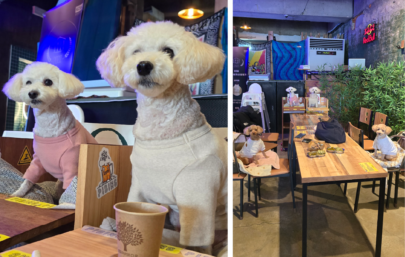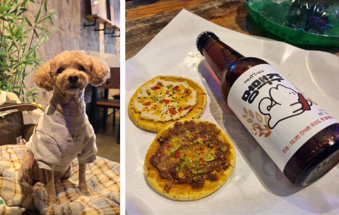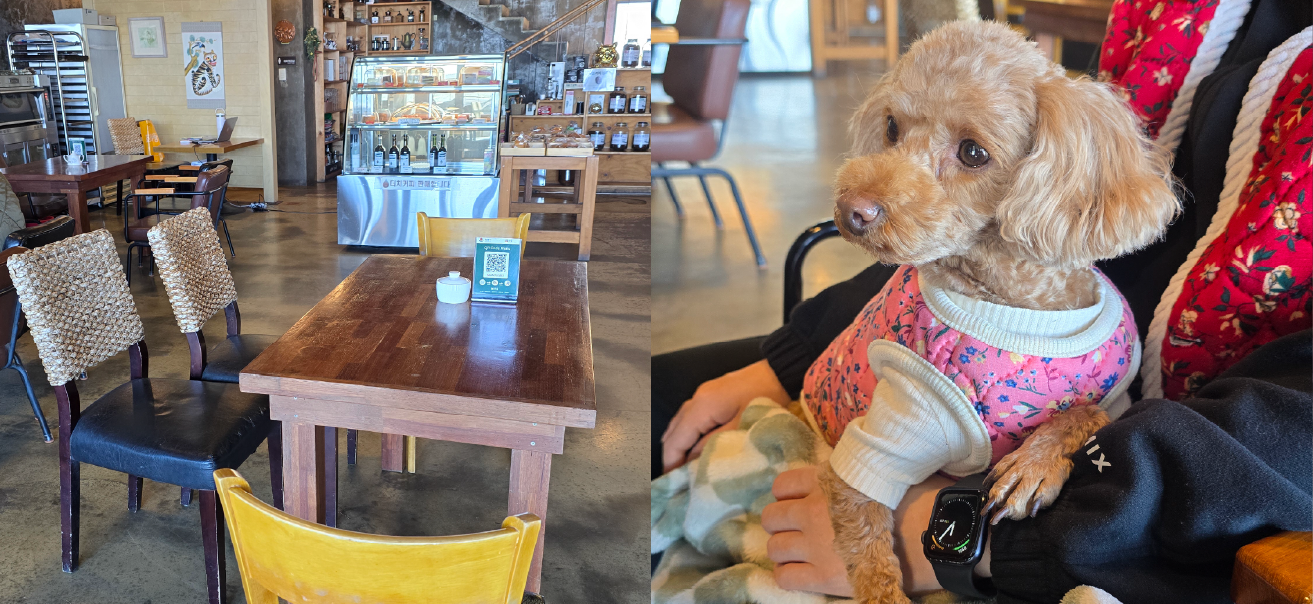 다만 매장이 크지 않아서 저녁 시간대에는 다소 붐빌 수 있어. 그래서 멍이를 바닥에 앉힐 경우 케이지나 이동 가방을 준비해 가는 게 좋아. 멍이가 바닥의 차가운 기운을 오래 받지 않도록 가방이나 무릎 위에서 쉬게 해 주면 훨씬 편안해 보여. |