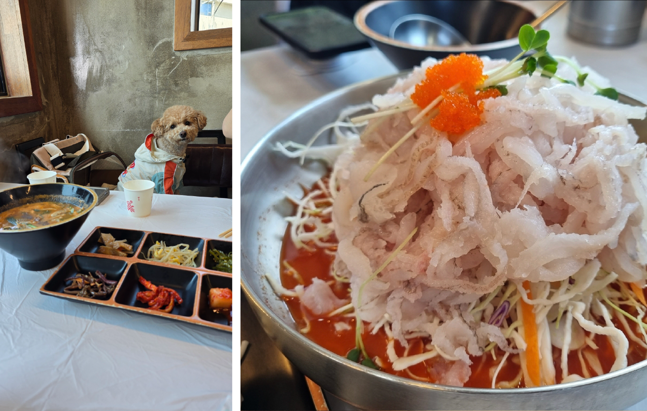 한식이 땡기거나, 아침 일찍 든든하게 먹고 싶을 땐 실내 애견동반 가능한 어촌마을 물회섭국도 자주 가는 편이야.